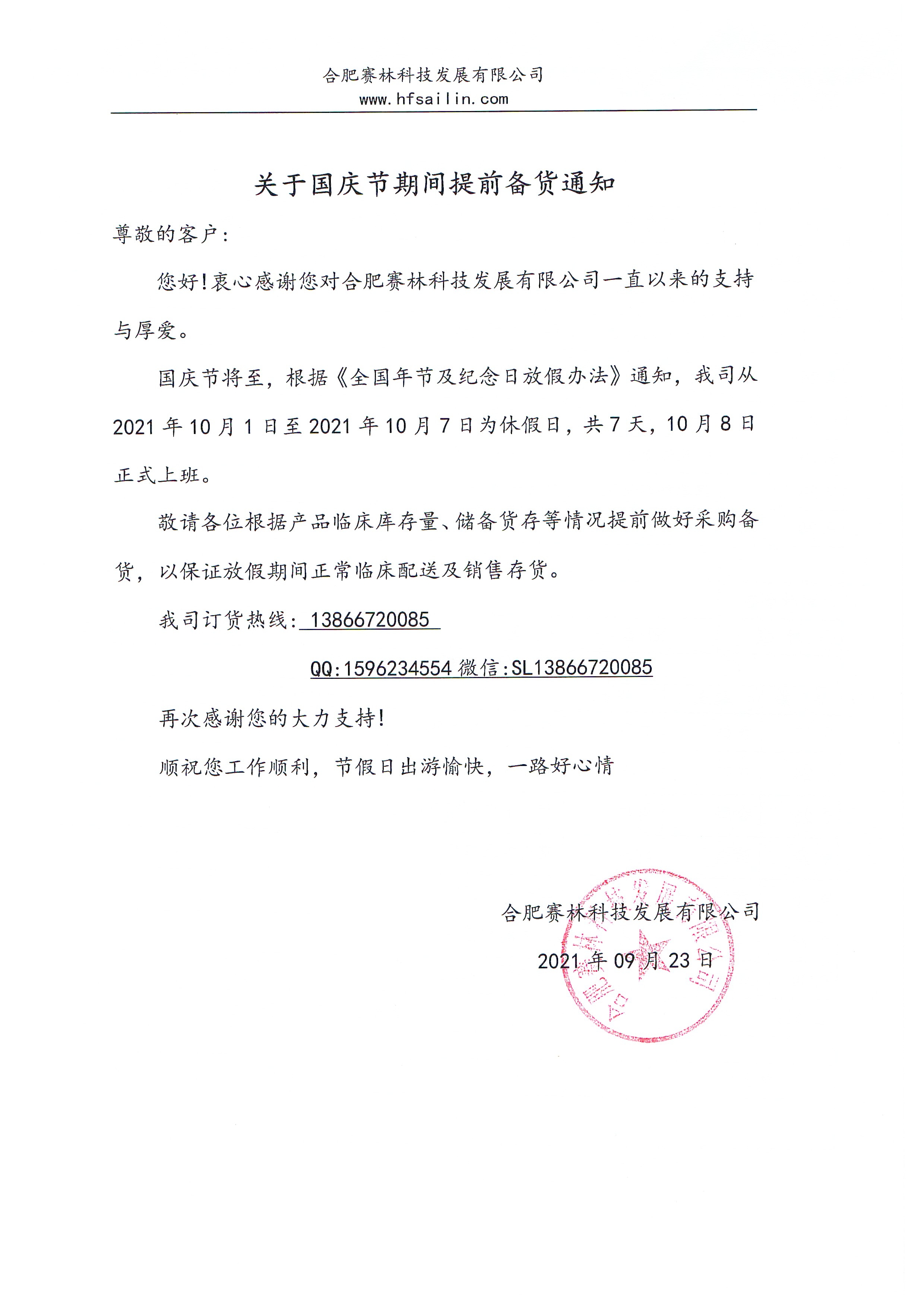 關(guān)于國慶節(jié)期間提前備貨通知